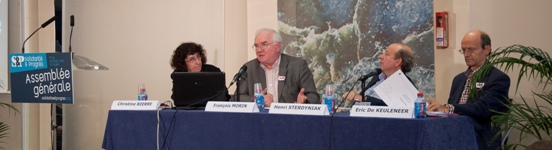 Ensuite, des économistes en colère nous ont rejoint pour faire le point sur la chute imminente du système financier et monétaire international. Ont débattu autour de Christine Bierre, rédactrice en chef de Nouvelle Solidarité, François Morin (Professeur émérite à l’Université Toulouse I, ancien membre du Conseil d’analyse économique du premier ministre et du Conseil de la Banque de France ; il conseilla le gouvernement Mauroy pour les nationalisations de 1981...), Henri Sterdyniak (Directeur du Département économie de la mondialisation à l’OFCE et membre-fondateur des Economistes atterrés) et Eric de Keuleneer (Professeur à la Solvay Brussels School of Economics – ULB). Ne pouvant être présent, Jean de Maillard (vice-président du Tribunal de grande instance de Paris et expert en criminalité financière) a envoyé une contribution écrite.
