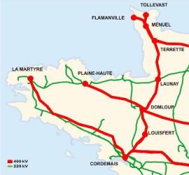 • ?En gros, il y a deux autoroutes électriques de 400 kV. Une qui va de la Loire vers Brest, et l’autre de la Normandie à Saint-Brieuc. Au niveau local, il y a un réseau de voies rapides mieux réparties mais qui ne peut pas fournir la puissance nécessaire !