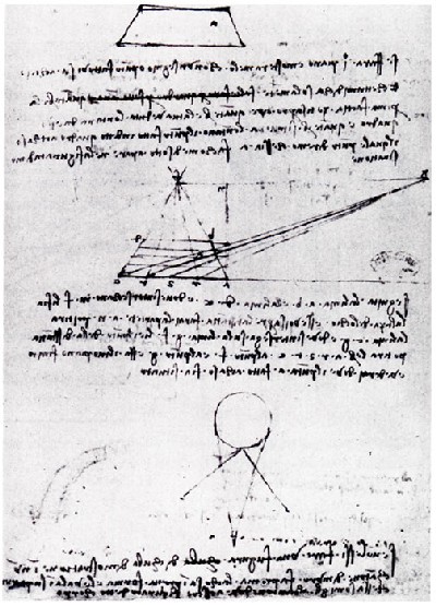 Longtemps après, dans un dessin du Codex Madrid (Fig. 1), Léonard de Vinci (1452-1519) tentera de décortiquer le fonctionnement de ce modèle. Mais dans le même manuscrit, il démontra d’une façon rigoureuse les limites inhérentes au canon perspectiviste renaissant Albertien.