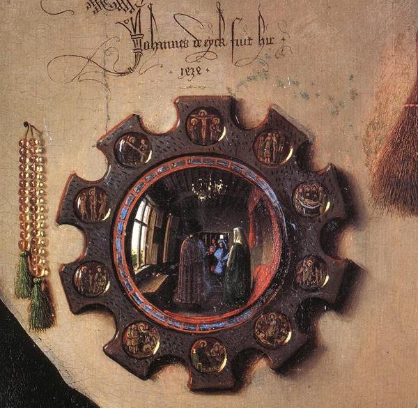 C’est ici qu’on peut faire un parallèle avec le miroir sphérique au centre du tableau de Jan van Eyck, Les Epoux Arnolfini (Fig. 7), peint en 1434, dix-neuf ans avant ce sermon.