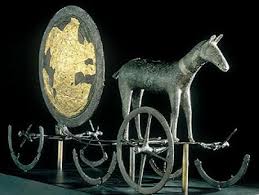 Le Chariot du Soleil Modèle en bronze d’un chariot transportant un Soleil d’or. Trundholm, Zealand, Danemark. (XIV· siècle avant J.C.)