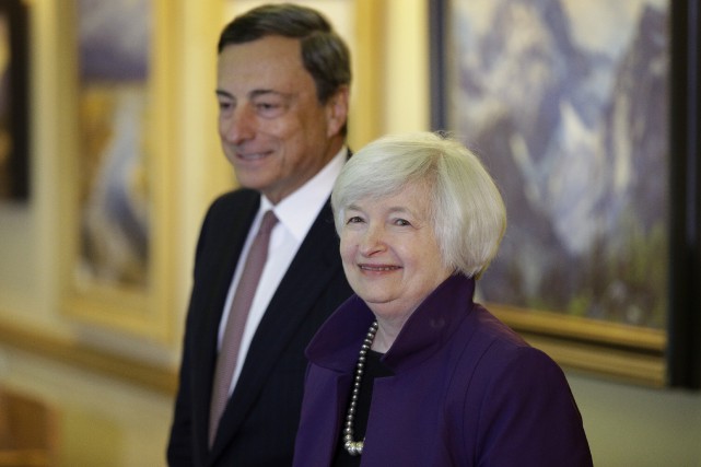 Le week-end dernier a eu lieu, sous la houlette de la Réserve fédérale américaine (Fed), la réunion annuelle des banquiers centraux, dans le décor « carte postale » de Jackson Hole, dans l’État du Wyoming. Le moment tant attendu était la conférence de presse de Janet Yellen, la présidente de la Fed, et Mario Draghi, le président de la Banque centrale européenne (BCE) ; quelques sueurs froides leur parcourant le dos, les journalistes, les analystes et l’ensemble des marchés financiers attendaient anxieux des éventuelles annonces sur le maintien ou non de la politique monétaire de « quantitative easing » (« assouplissement quantitatif », c’est-à-dire une politique de taux d’intérêts bas et rachat d’actifs), scrutant et interprétant les moindres mouvements de cils des deux oracles de la finance. Yellen allait-elle annoncer la hausse des taux ? Draghi allait-il annoncer la fin du programme de rachat d’actifs (60 milliards d’euros injectés chaque mois dans les banques) ?