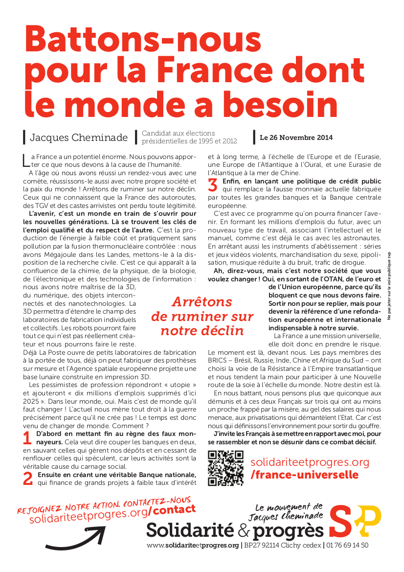 11h : Discours de Jacques Cheminade La France dont le monde a besoin