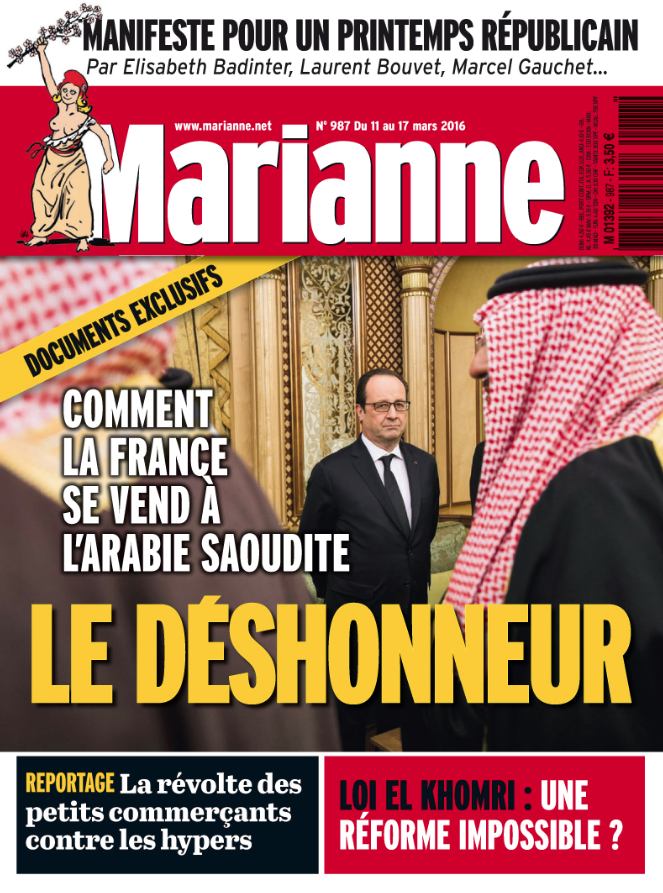 Au moment où à Bruxelles, la terreur aveugle vient d’ensanglanter une fois de plus l’Europe, et où l’on parle d’un terrorisme désormais « professionnalisé », il est utile de revenir sur le dossier accablant publié par Marianne dans leur numéro du 11-17 mars, sur la macabre collaboration entre le gouvernement de François Hollande et les courants du wahhabisme le plus radical en Arabie Saoudite, connus pour leur financement des djihadistes.