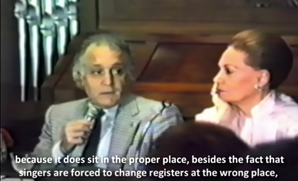 Je suis contente d’avoir été invitée à prendre la parole sur cette question, expliqua Tebaldi, parce que c’est une question importante. La hausse continuelle du diapason crée de terribles problèmes aux chanteurs, et je l’ai combattu, avec Mario del Monaco, pendant ma carrière.