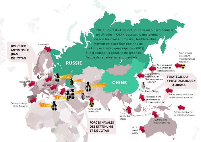 Les Etats-Unis et l’Angleterre ont voulu encercler l’URSS et la Chine pendant le guerre froide ? Certainement. Cette politique continue aujourd’hui ? Evidemment, puisque les logiques de guerre froide ne sont pas réellement terminées et la montée extraordinaire des puissances asiatiques mettent en défaut la superpuissance américaine, c’est un comportement de peur, défensif et violent je pense.