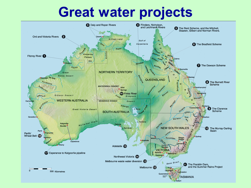 Notre ami le défunt professeur Lance Endersbee, vétéran du projet Snowy, nous avait aidé à élaborer plusieurs programmes. Parmi eux, un programme comprenant 18 projets d’eau pour transformer l’Australie, où se trouve le second plus grand désert après le Sahara, en une terre d’oasis. Nous avons un programme d’énergie nucléaire, l’Australie disposant de la plus grande réserve d’uranium du monde et de la seconde réserve de thorium.