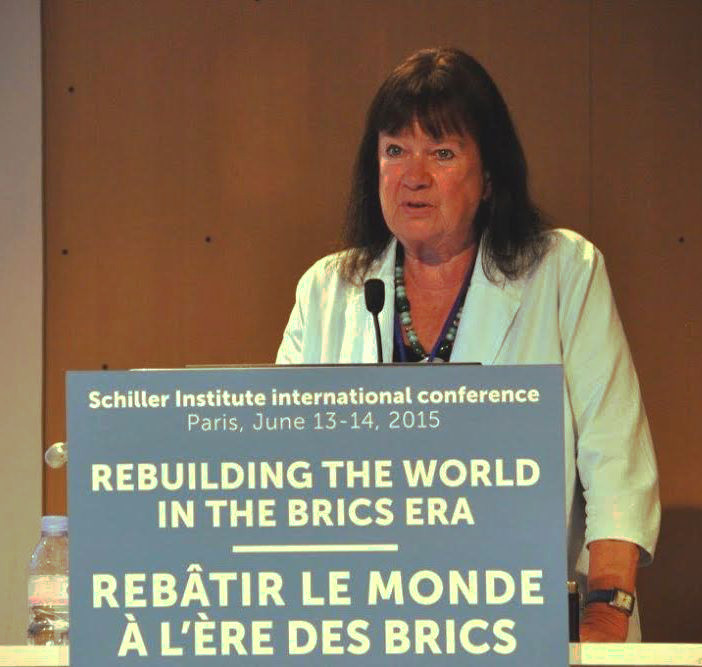 Cependant, Mme LaRouche s’est voulue résolument optimiste en présentant les BRICS, la Nouvelle route de la soie de la Chine et l’Union eurasiatique russe comme l’alternative à ces dangers. Cela fait d’ailleurs plus de vingt-cinq ans que son Institut contribue à construire cette alternative, en proposant notamment, dès la chute du Mur, un ordre de paix par le développement mutuel pour le XXIe siècle, fondé sur des corridors de développement à travers l’Eurasie.