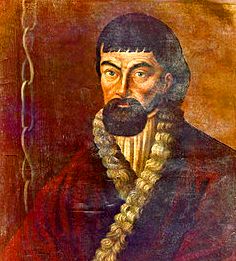Dans sa barbe noire, décrit Griniov, on voyait des fils blanchâtres ; ses yeux, grands et vifs, ne demeuraient pas en place. Son visage avait une expression plutôt aimable mais friponne. Ses cheveux étaient coupés au bol...