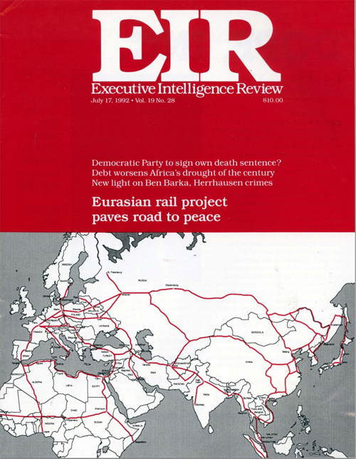 Elle montra la carte du « Pont terrestre eurasiatique » publiée par l’Institut Schiller en 1991, conçu comme une stratégie de paix pour le XXIe siècle, avec la construction de corridors d’infrastructures reliant l’Europe à l’Asie. Ceci n’a, hélas, jamais pu se réaliser, car Margaret Thatcher et George Bush, qui voulaient utiliser la thérapie de choc pour faire de la Russie un exportateur de matières premières, ont tout fait pour l’empêcher.