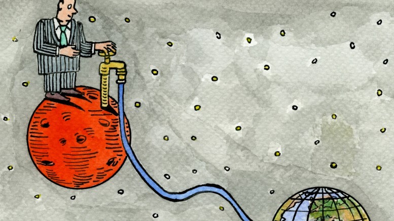 La présence de l’eau pour tout projet de colonisation humaine dans l’espace reste la question essentielle, que ce soit à des fins d’agriculture ou pour fabriquer l’oxygène dont nous avons besoin. Ironiquement, les corps célestes les plus proches de nous (dont la Lune et Mars) contiennent très peu d’eau tandis que les plus éloignés, les planètes externes (Jupiter, Saturne, Neptune, Uranus) et leurs nombreuses lunes, de même que Pluton et les comètes, regroupent sous forme de glace la presque totalité de l’eau de notre Système solaire. Certaines lunes de Jupiter comme Ganymède et Callisto, ou de Saturne comme Titan, sont même constituées de glace, pour presque la moitié de leur masse !