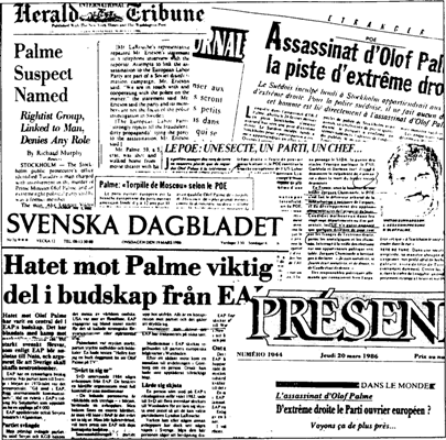 En France, sans la moindre enquête, la presse parisienne, nourrie par une avalanche de dépêches de l’AFP, se déchaîna contre le POE, présidé à l’époque par Jacques Cheminade, aujourd’hui président du parti Solidarité & Progrès et trois fois candidat à l’élection présidentielle française (1995, 2012 et 2017) : « L’assassinat d’Olof Palme : la piste d’extrême-droite » (Libération), « Viktor Gunnarsson, membre du POE et suspect fanatique », « Le POE, une secte, un parti, un chef », etc. ad nauseam.