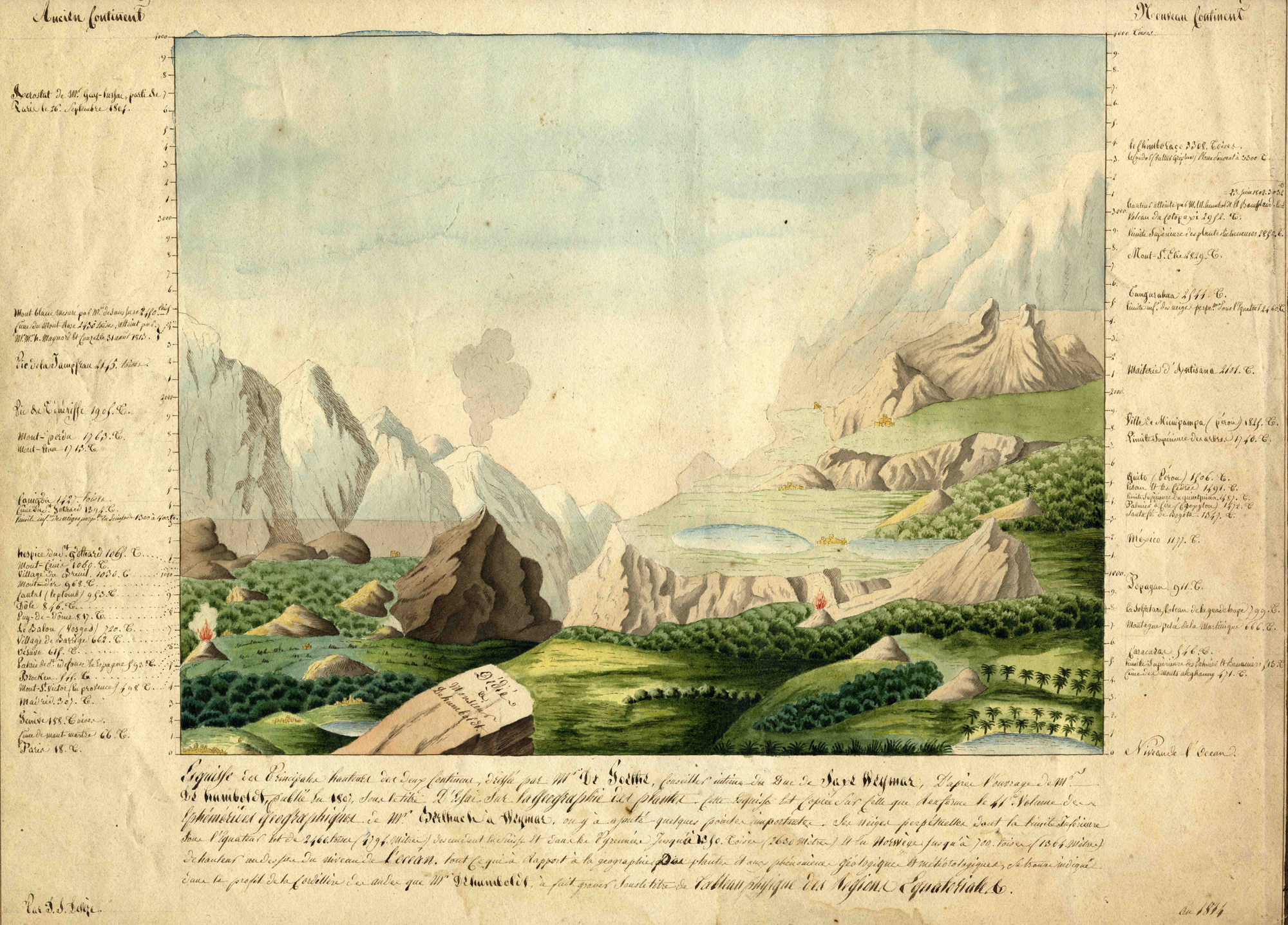 Humboldt acheva sa tâche en publiant les résultats de ses voyages, dont 1 425 cartes et illustrations, souvent coloriées à la main. Cet exploit lui coûta la fortune personnelle qui lui restait encore.