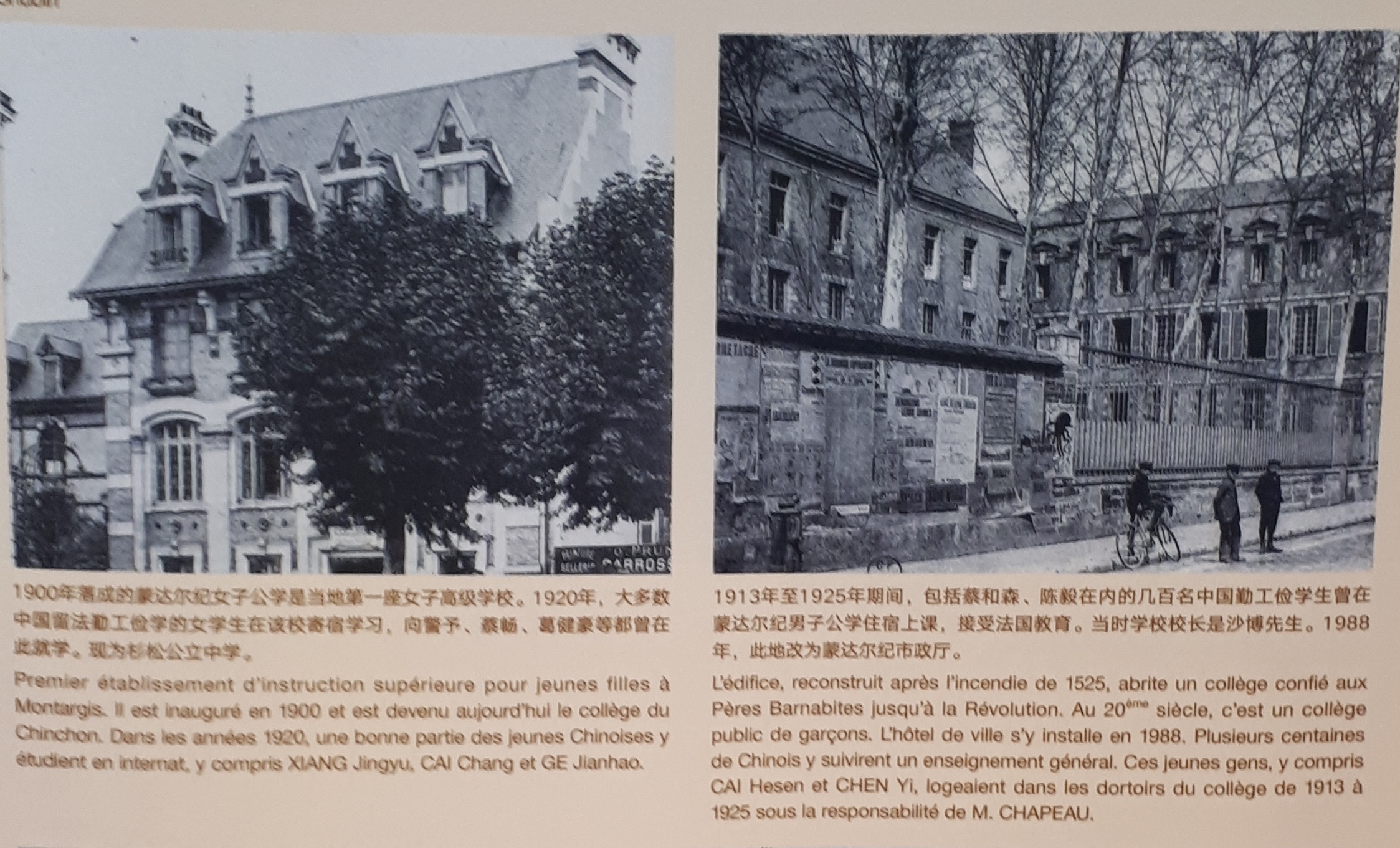 En 1902, Li Shizeng arrive en France. Après des études d’agronomie à Montargis et de chimie à l’Institut Pasteur, il ouvre, en 1908, une usine de tofu à la Garenne-Colombes, puis, juste à côté, une école qui accueillera une trentaine d’élèves chinois. La création en 1912 de l’Association pour les études dans la frugalité en France et à Beijing, avec le soutien de Cai Yuanpei, ouvrira la voie à l’arrivée de 2000 étudiants, dont 1400 entre 1919 et 1920. Entre 3 et 4000 étudiants et étudiantes, si l’on compte entre 1919 et 1925 !