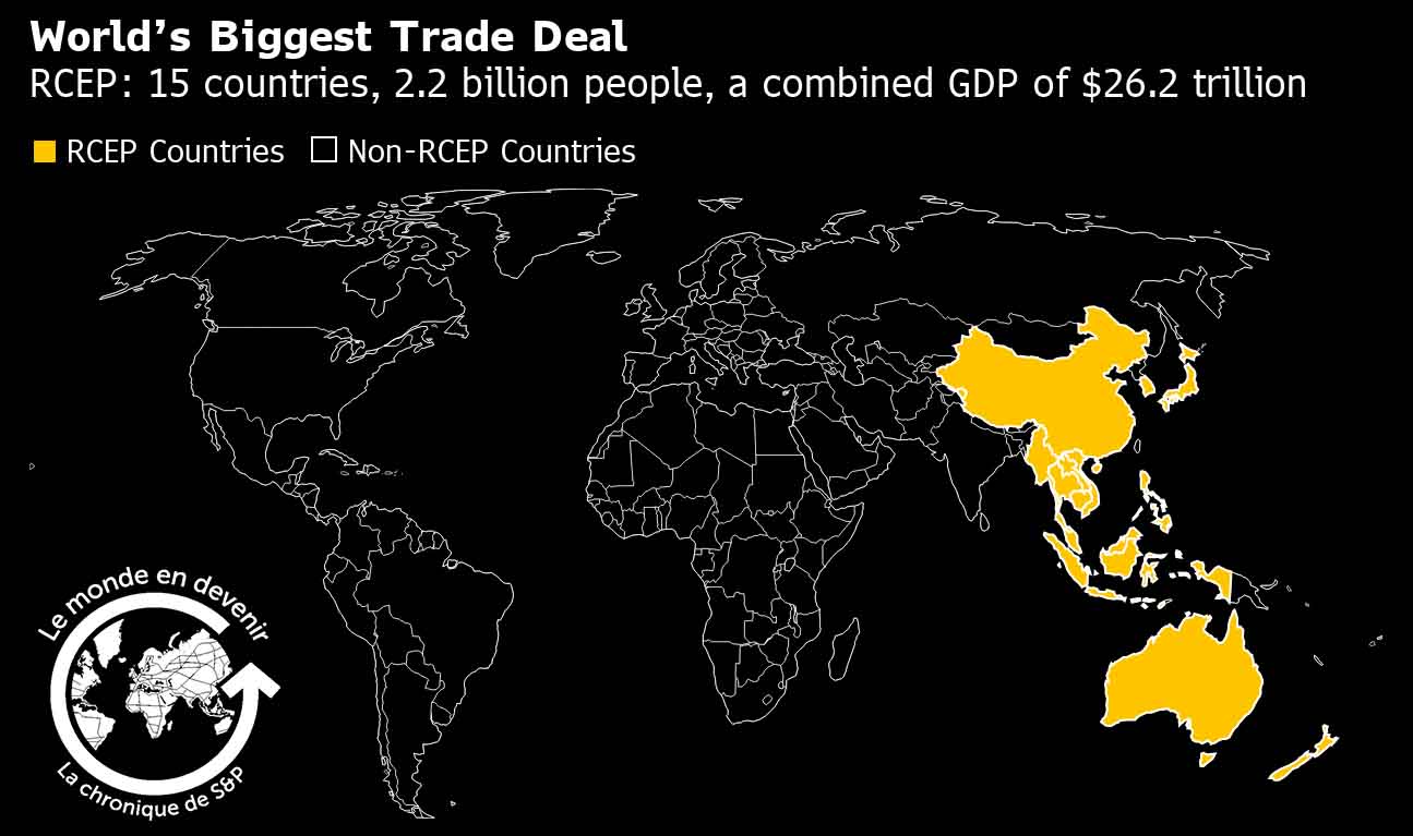 Il s’agit en effet du plus important accord commercial jamais conclu entre des nations. Il concerne plus de 2 milliards d’êtres humains, et environ 30 % de l’économie mondiale. L’Inde, qui n’a pas souhaité participer aux négociations et à la signature de l’accord, a toutefois fait savoir qu’elle envisageait la possibilité de le rejoindre plus tard.