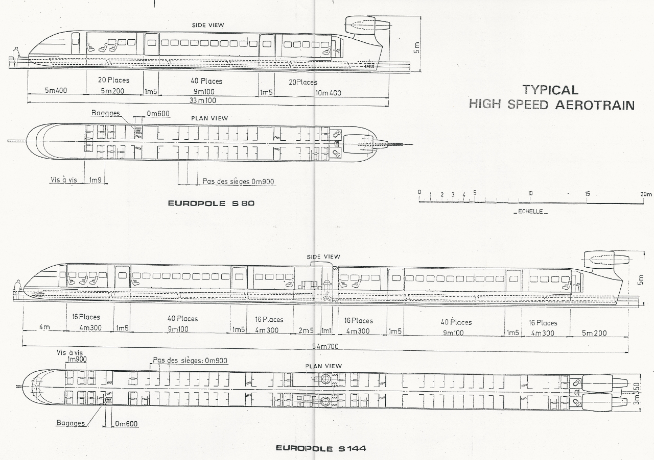 Sollicitées, les équipes de la société de l’Aérotrain conduisent alors plusieurs études et proposent aussi bien un tracé qu’un véhicule de grande capacité, le S-144, c’est à dire un véhicule pour des voyages sub-urbains de 144 places, long de plus de 54 mètres.