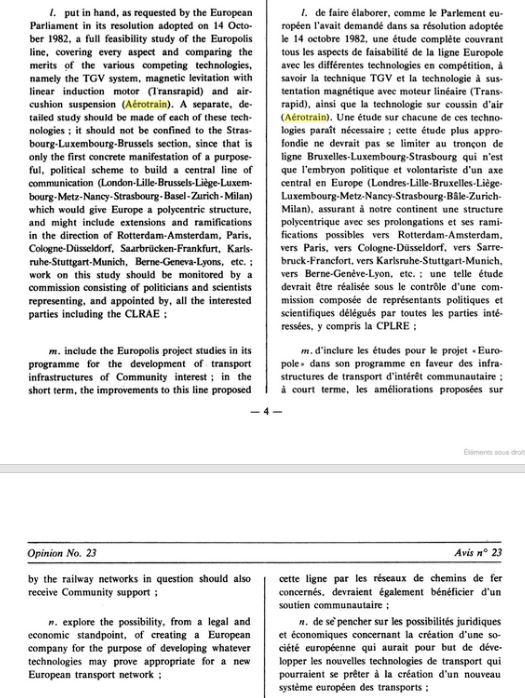 Suite à cette intervention, le CPLRE, dans son avis N°23 (10, i) à propos de « certains aspects de la politique de la Communauté européenne dans le domaine des transports », lance une fois de plus un appel à une véritable politique européenne des transports dont Europole :
