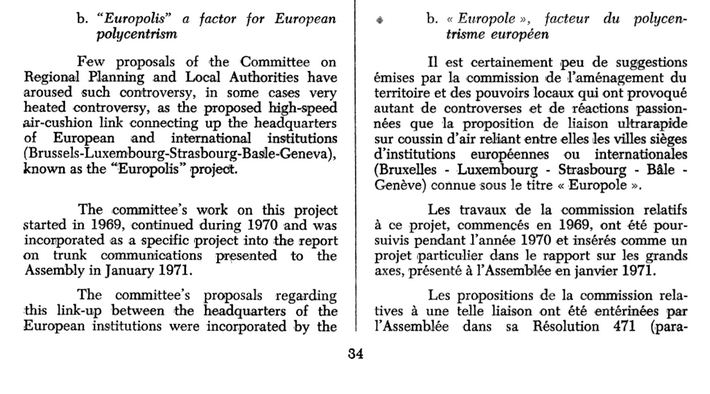 Un des schémas les plus discutés à l’époque : le projet Europole (En anglais Europolis, du nom d’une hypothétique capitale polycentrique européenne). Constatant la répartition, sur plusieurs pays, des grandes institutions européennes, Europole proposait tout simplement de les relier par une voie de transport rapide.