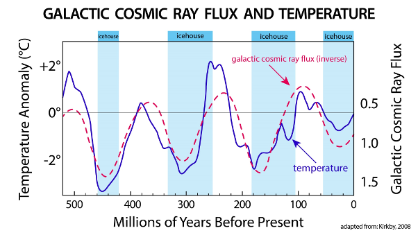 Le chercheur israélo-américain Nir Shaviv a montré que les passages de notre Système solaire dans les bras spiraux de notre Voie lactée correspondent aux périodes de glaciation majeures, de net refroidissement de la Terre.