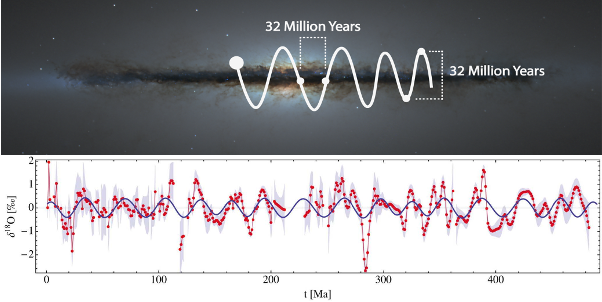 Dans une autre étude, Shaviv montre que les variations de température correspondent aussi aux transits de notre Soleil au-dessus et en-dessous du plan galactique.