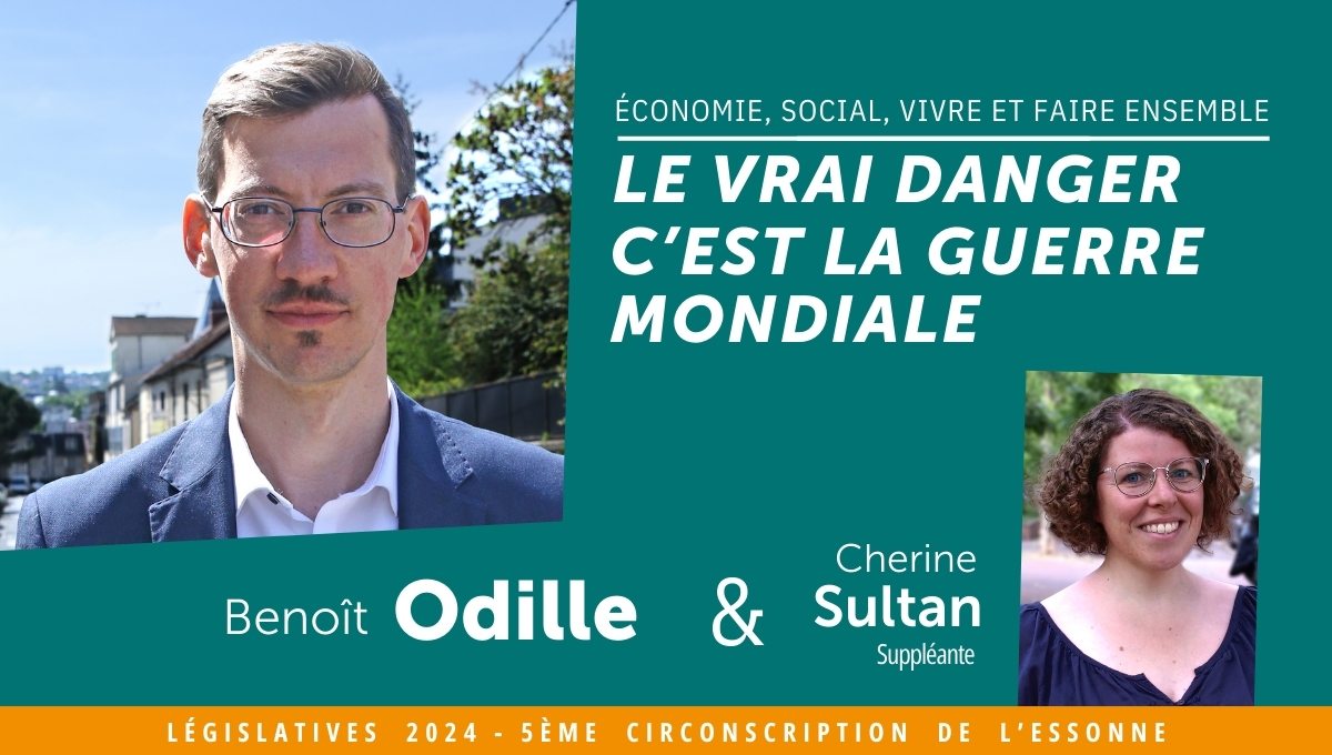 Benoît Odille, ingénieur, se présente aux élections législatives des 30 juin et 7 juillet 2024 dans la 5ème circonscription de l’Essonne (Saclay-Orsay). Chérine Sultan est sa suppléante.