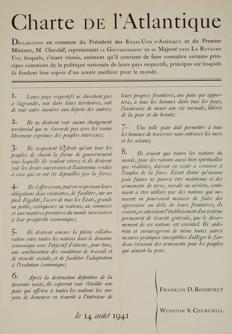 Évidemment, dès la fin de la guerre, et surtout dès la mort de Franklin Roosevelt, les Britanniques violeront allègrement cette charte comme on le constate aujourd’hui avec les politiques de « changement de régime ».