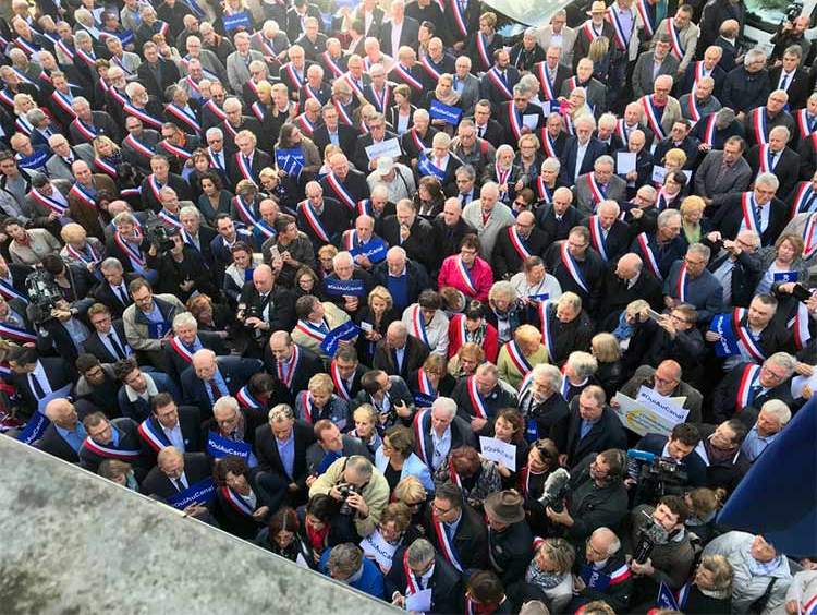 Lors de la visite d’Emmanuel Macron à Amiens : manifestation d’élus réclamant la réalisation du Canal Seine-Nord Europe (CSNE).