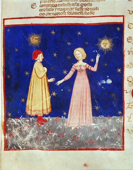 Dante parvient à maintenir quelques instants son regard vers le soleil flamboyant (la lumière du Ciel représentant Dieu) et termine le dernier chant du Paradis, et de sa Commedia, par ces belles paroles : « L’amor che move il sole e l’altre stelle » (l’Amour qui déplace le Soleil et les autres étoiles).