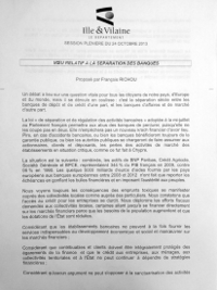 Le Conseil Général d’Ille et Vilaine se prononce pour la mise en place d’une législation de séparation stricte entre banques de dépôt et de crédit d’une part, et banques d’affaires et de marché d’autre part.