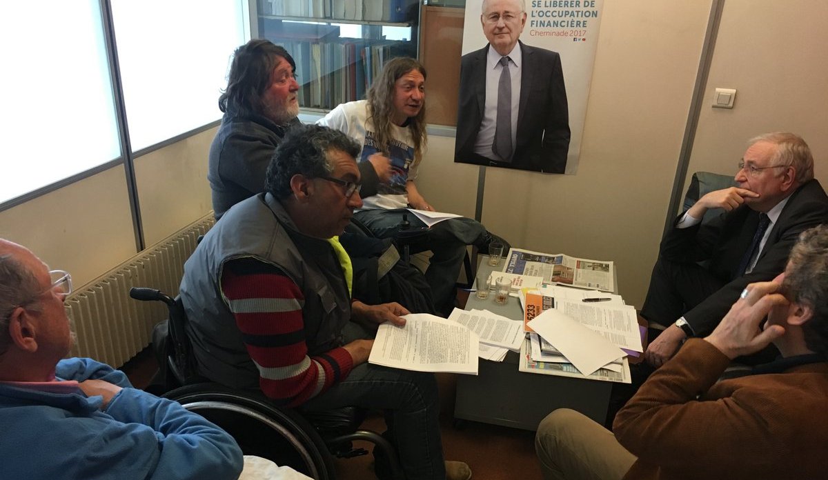 Le samedi 15 avril, quatre représentants de « La marche citoyenne des oubliés » font halte au local de campagne de Cheminade à Clichy pour dialoguer longuement avec lui. Cette marche, organisée par des membres de l’Association des paralysés de France (APF), s’est déroulée de Nantes à Paris du 25 mars au 11 avril.