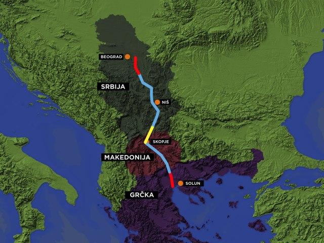 Pour réussir cette jonction de 651 km, il faut aménager la rivière Axios qui traverse la Grèce et la Macédoine (où on la nomme Vardar), ainsi que la rivière Morava en Serbie (voir carte). Enfin, il faut les relier par un canal de jonction.