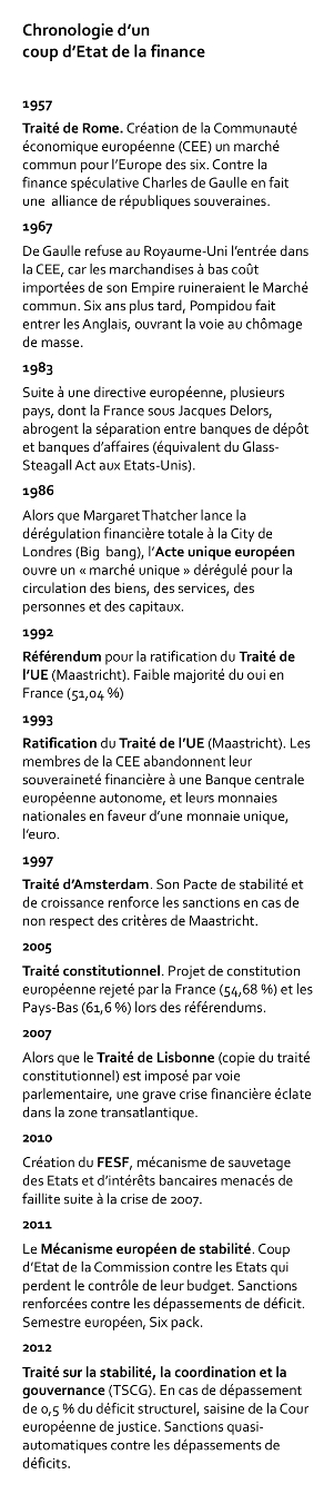 Au niveau national, la prise de contrôle par la finance remonte à la fin des années 1960, avec un Etat qui abandonne peu à peu tout contrôle sur l’émission monétaire pour la livrer aux banques privées.