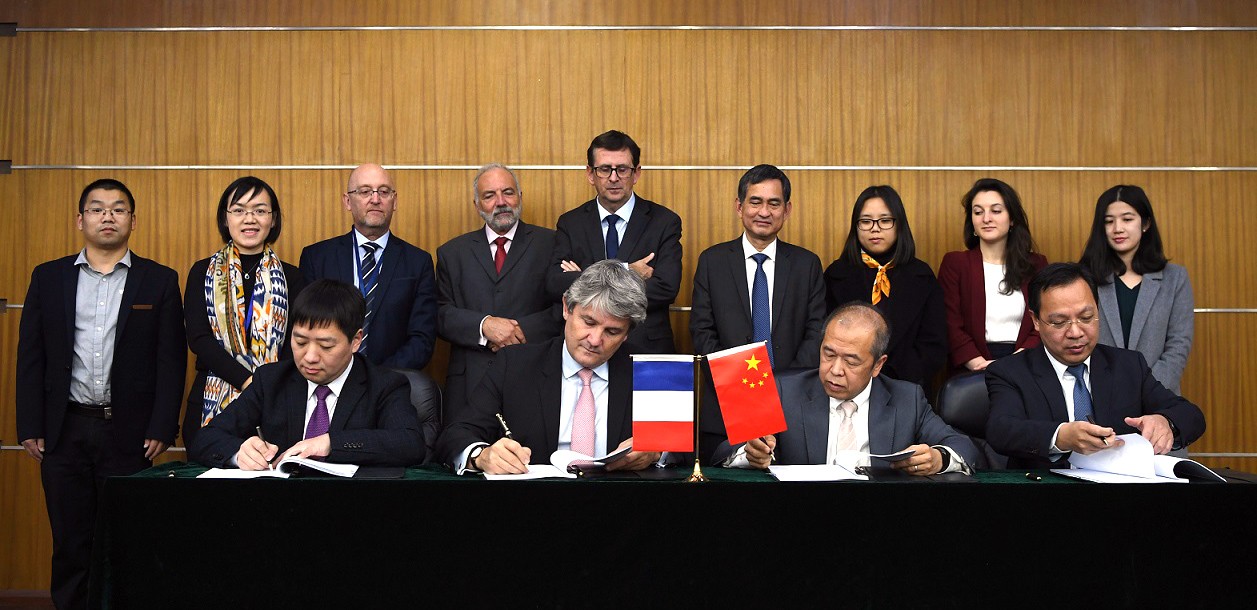 - Cette signature est accompagnée d’une Déclaration politique intergouvernementale signée le 24 novembre par M. Jean-Maurice Rippert, Ambassadeur de France en Chine, et M. Zhigang Wang, Vice-Ministre du MOST, en marge de la rencontre sur le dialogue de haut niveau sur les échanges humains, et en présence de M. Jean-Yves Le Drian, ministre des Affaires étrangères de la République française et de Madame Liu, vice-présidente de la République populaire de Chine.