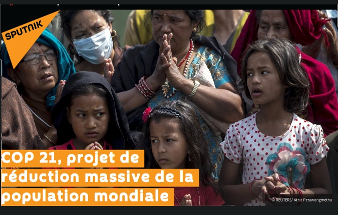 La COP 21 n’a pas tellement pour objectif la protection de la planète, mais un « plongeon massif de la population actuelle de sept milliards à un milliard seulement » , parce que « l’économie fondée sur les énergies renouvelables ne pourra accueillir qu’un milliard d’individus sur la Terre ». Christine Bierre témoigne : « On dit, par exemple que s’il y a des changements climatiques, c’est à cause du travail de l’homme et non pas des cycles galactiques, des cycles solaires, des cycles terrestres qui ont toujours été à l’origine des changements climatiques. Si cette théorie est vraie, cela veut dire qu’il faut réduire la production de l’homme. On propose alors de sortir des énergies fossiles et du nucléaire pour aller, d’ici 2050, vers les énergies renouvelables. Mais ces énergies renouvelables produisent beaucoup moins que les énergies fossiles et le nucléaire. Si on va vers une économie qui est fondée sur les énergies renouvelables, cette économie-là ne pourrait soutenir et accueillir qu’environ un milliard d’individus sur la planète. Or, aujourd’hui, nous sommes sept milliards et nous allons vers beaucoup plus »