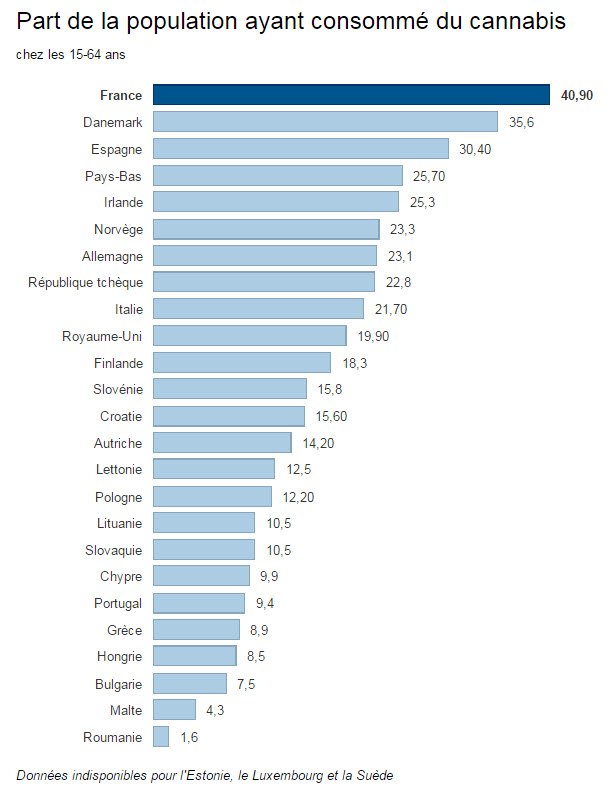 La dégradation majeure de notre système éducatif porte sa marque, puisque sur les 27 Etats membres de l’Union Européenne, la France est le tout premier consommateur de cette drogue, qui contribue à nous remiser au 28e rang du classement PISA qui compare les performances éducatives des Nations.