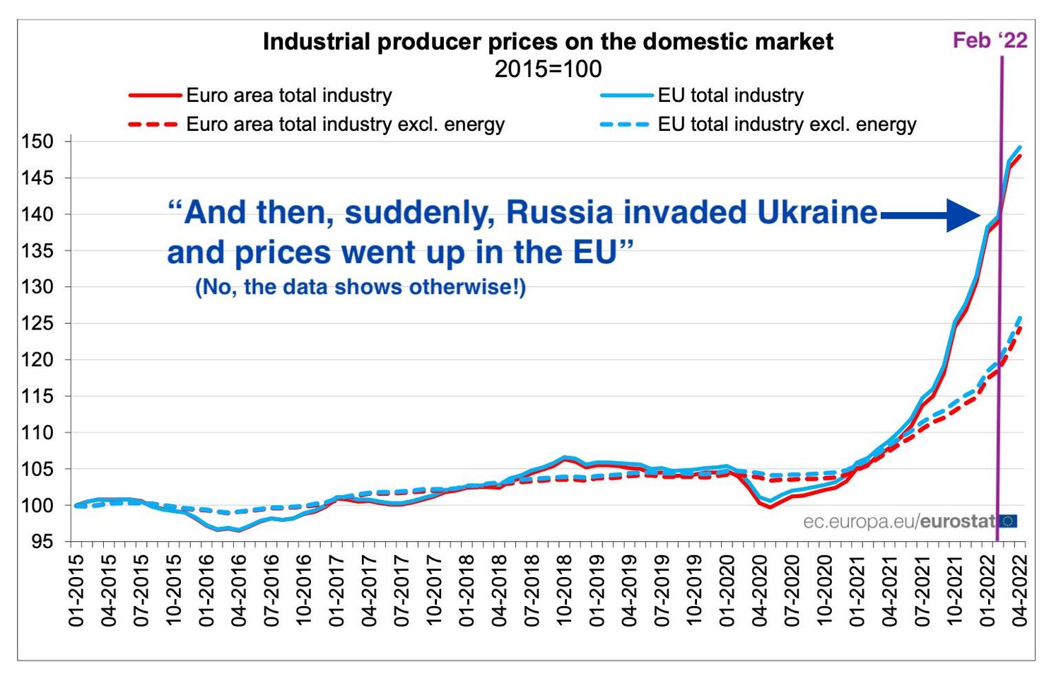 "Soudainement, la Russie a envahi l’Ukraine et les prix ont bondi dans l’UE (Ah non, les chiffres indiquent le contraire...)