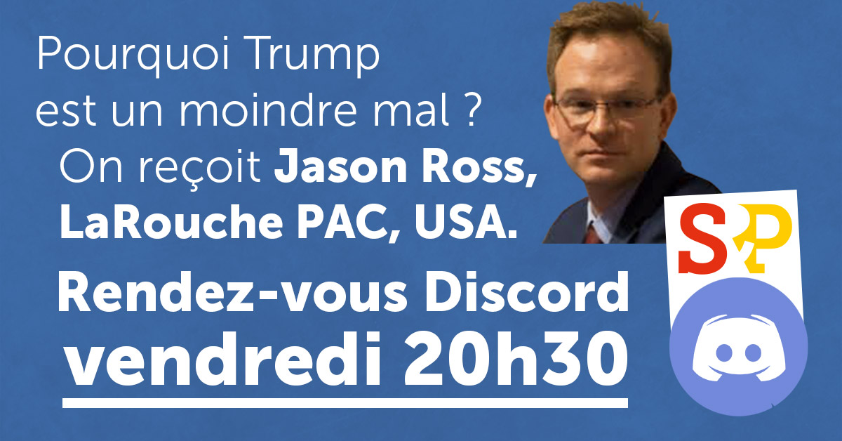 Dans le cadre de notre rendez-vous hebdomadaire sur Discord, S&P invite un ami américain du LaRouche PAC pour comprendre pourquoi Trump est un moindre mal.