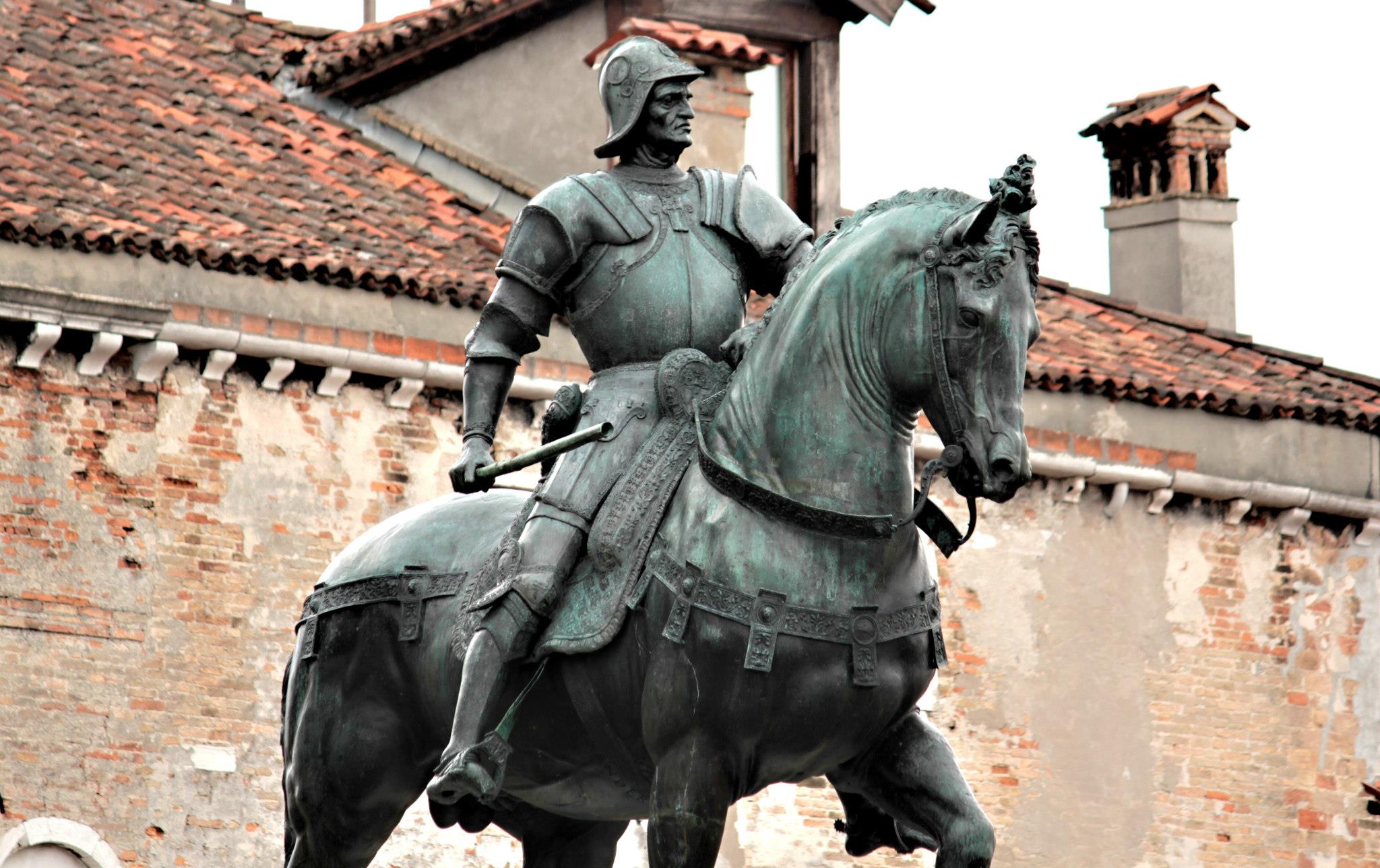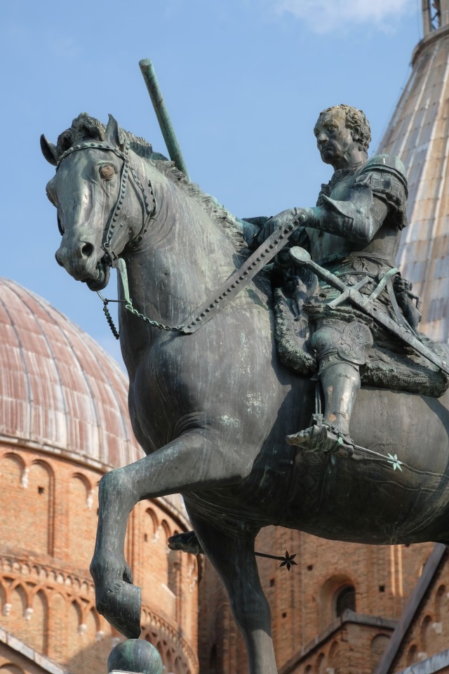 Ce n’est que quelques années plus tard, à Padoue, entre 1447 et 1453, que Donatello (1386-1466) travaillera à la statue d’Erasmo da Narni (1370-1443), un condottiere de la Renaissance, c’est-à-dire le chef d’une armée de métier au service de la République de Venise, qui régnait alors sur la ville de Padoue.