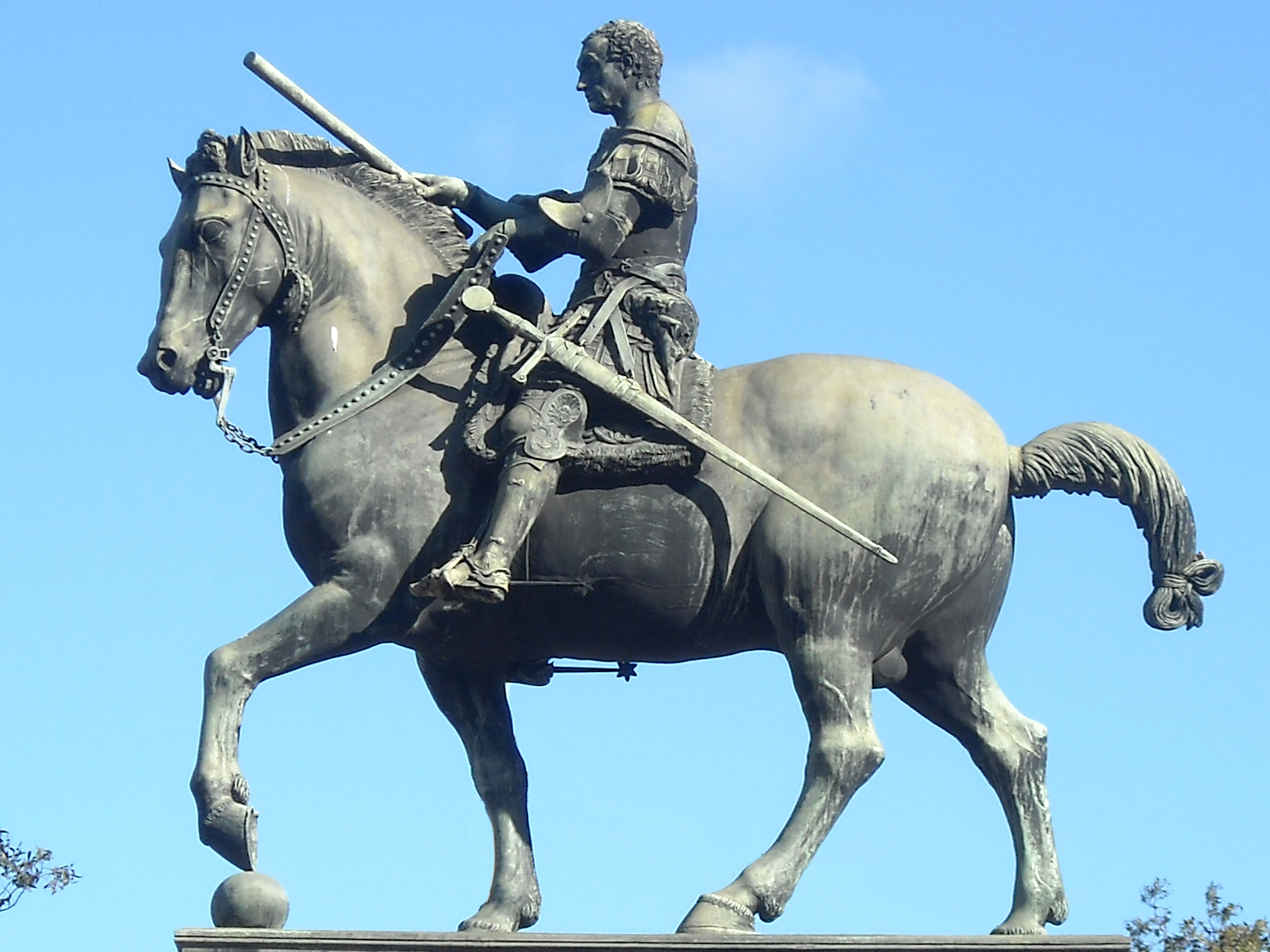 Une trentaine d’années plus tard, entre 1480 et 1488, à l’issue d’un concours, Andrea del Verrocchio est sélectionné pour réaliser une grande statue équestre (400 × 380 cm) en bronze d’un autre condottiere italien, Bartolomeo Colleoni (1400-1475).