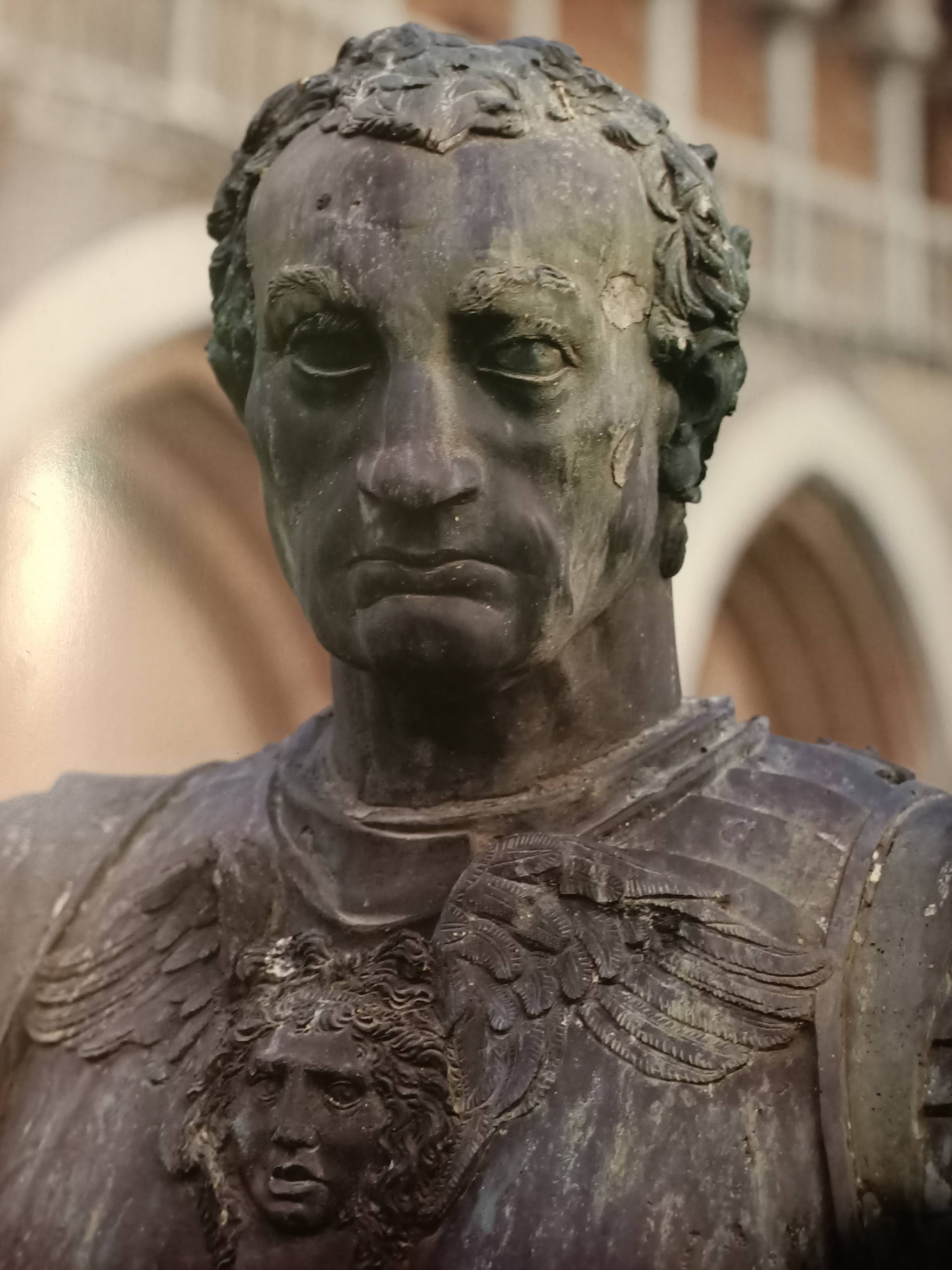 Ainsi, Gattamelata n’est pas la sculpture classique, grecque ou romaine, d’un héros au physique sculpté, mais une sorte d’homme nouveau qui réussit par la raison.