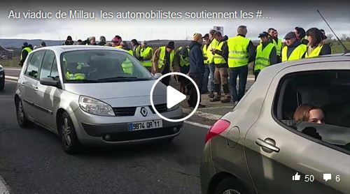 Péage du Caylar et de Millau : de retour de son voyage dans le sud, Jacques Cheminade s’est arrêté avec quelques militants au péage du Caylar dans l’Hérault (34), puis au péage près du Viaduc de Millau, dans l’Aveyron (12), où 200 gilets jaunes tiennent bon depuis trois semaines. Le temps de venir les saluer et d’apporter leur soutien mais aussi de répondre à un journaliste du Midi Libre qui prétendait que les bloqueurs étaient à peine 20 au péage du Viaduc. Sur le compte Facebook de Jacques Cheminade, on peut lire : « Pendant que la presse parle en boucle des violences, nous constatons ici que non seulement tout se passe dans le calme et le respect de l’autre mais que les automobilistes soutiennent largement les gilets jaunes. »