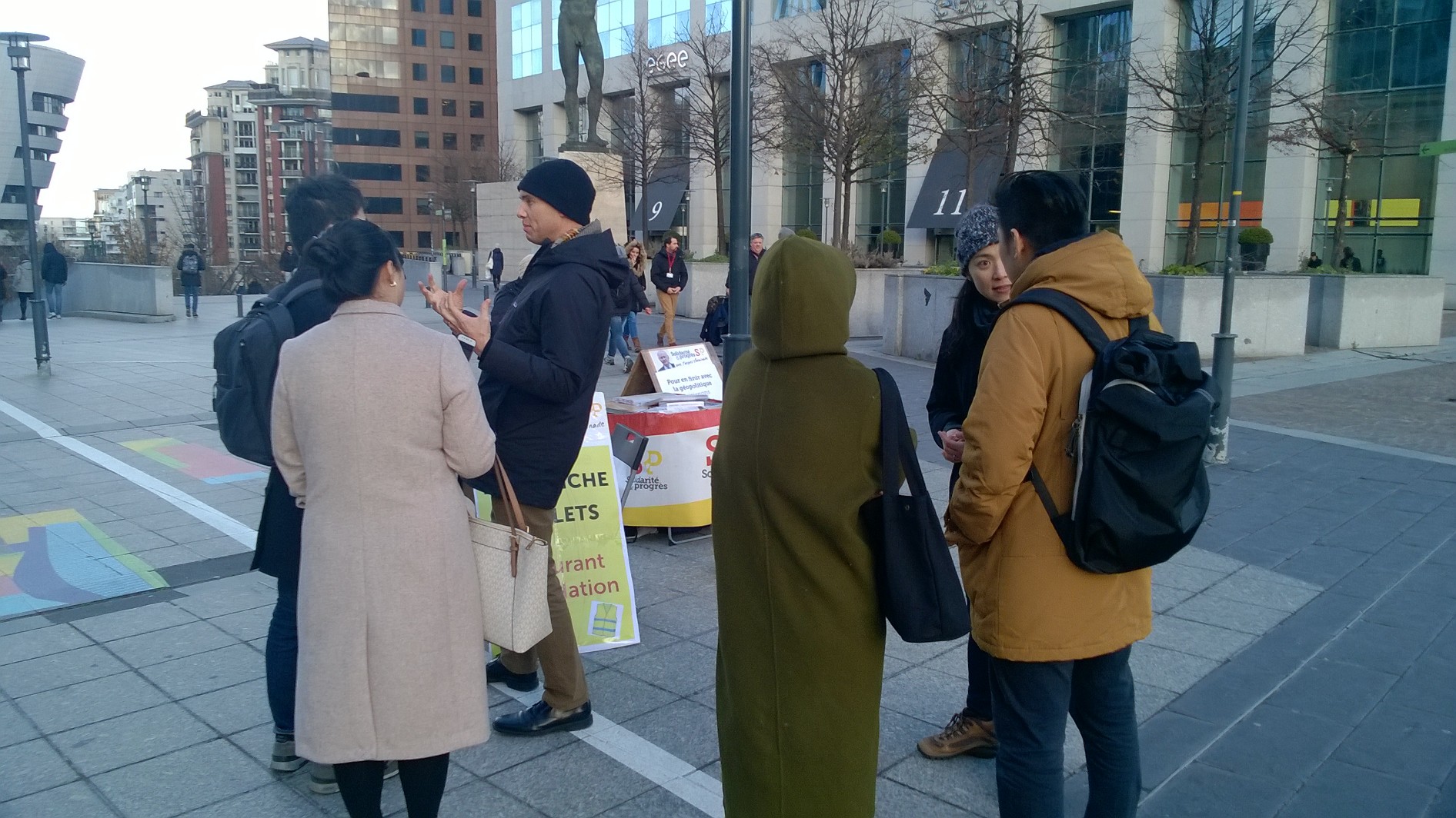 De passage à Paris, Mickael et Mi-Hua, deux patriotes américains et citoyens du monde, militants du Larouche Political Action Committee, sont venus avec les militants des Hauts-de-Seine (92) de S&P dans le « Wall Street français » - le quartier d’affaires de La Défense.