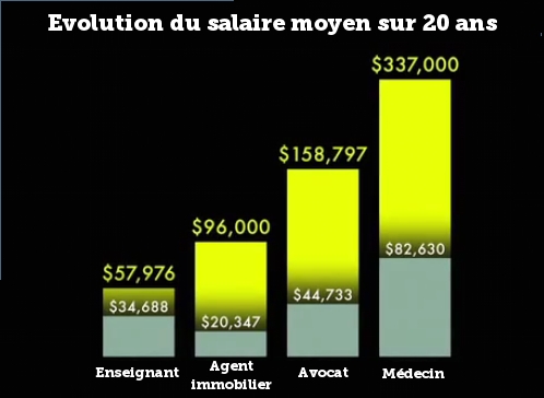 Evolution des salaires pour certaines professions aux Etats-Unis, sur une période de 20 ans