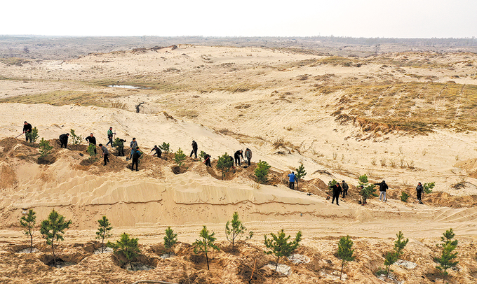 Chaque année, le 12 mars, tous les citoyens chinois vont planter des arbres. C’est ainsi que Mme Yin Yuzhen, dont les efforts ont été érigés en modèle par le président Xi Jinping, a pris sur elle de planter toute seule des arbres pour réhabiliter l’environnement désolé de la « bannière d’Uxin », un paysage semi-aride de l’ouest de la Chine.
