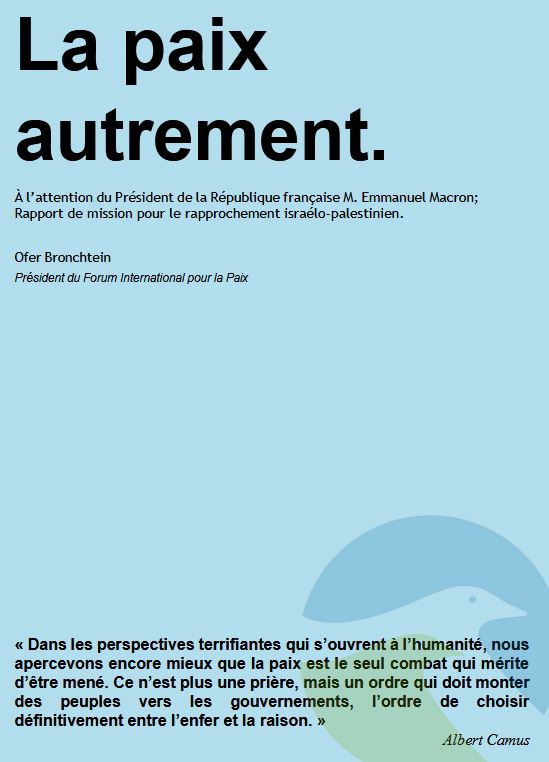 La paix, reconnaît Bronchtein, ne se fera que dans le cadre d’un renouvellement de la classe politique israélienne et palestinienne. Les extrémistes juifs ne doivent plus diriger l’État israélien et une nouvelle génération de dirigeants palestiniens doit pouvoir prendre la relève. Important dans ce cadre, ce qu’écrivait Bronchtein à Emmanuel Macron dans son rapport de mai 2024 (p. 40-41) :