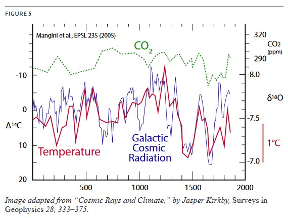 De multiples données climatiques sur les derniers millénaires indiquent de plus faibles températures entre les années 1500 et les années 1800, correspondant à une période de plus faible activité solaire et donc à un plus fort rayonnement cosmique.