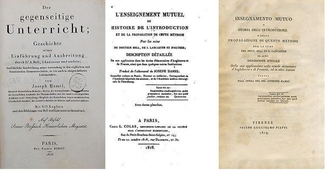 - Joseph Hamel, L’enseignement mutuel, Paris, 1818.