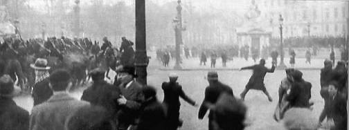 Le 6 février, quelque 30 000 manifestants convergent, sous différentes bannières, vers la place de la Concorde et l’Assemblée nationale. Edouard Daladier fait face. Cependant, près de l’Assemblée nationale, les Croix de Feu du colonel La Rocque refusent finalement le coup de force, provoquant l’échec du putsch. Des milliers des manifestants se ruent ensuite sur la place de la Concorde, où les manifestations dégénèrent en émeutes. Bilan final : un mort et 1664 blessés.