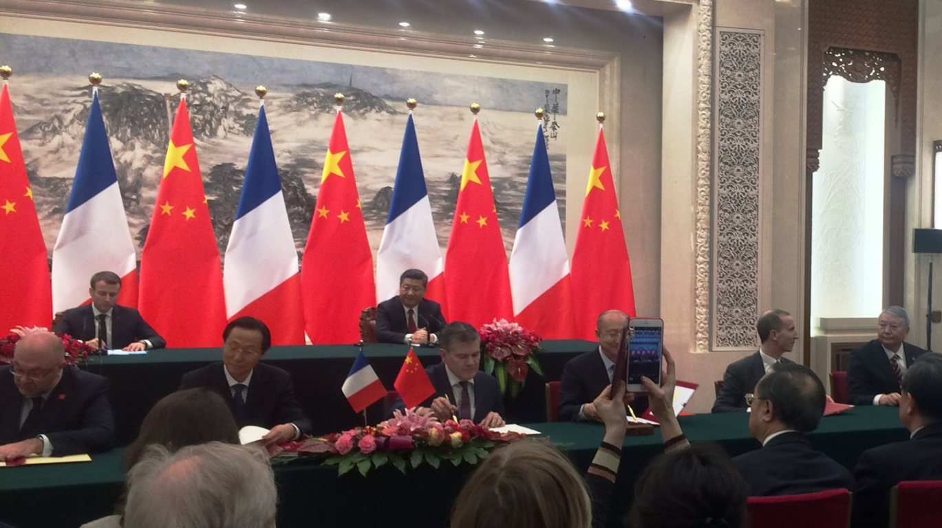 Accords commerciaux signés en présence des Présidents Xi Jinping et Emmanuel Macron :