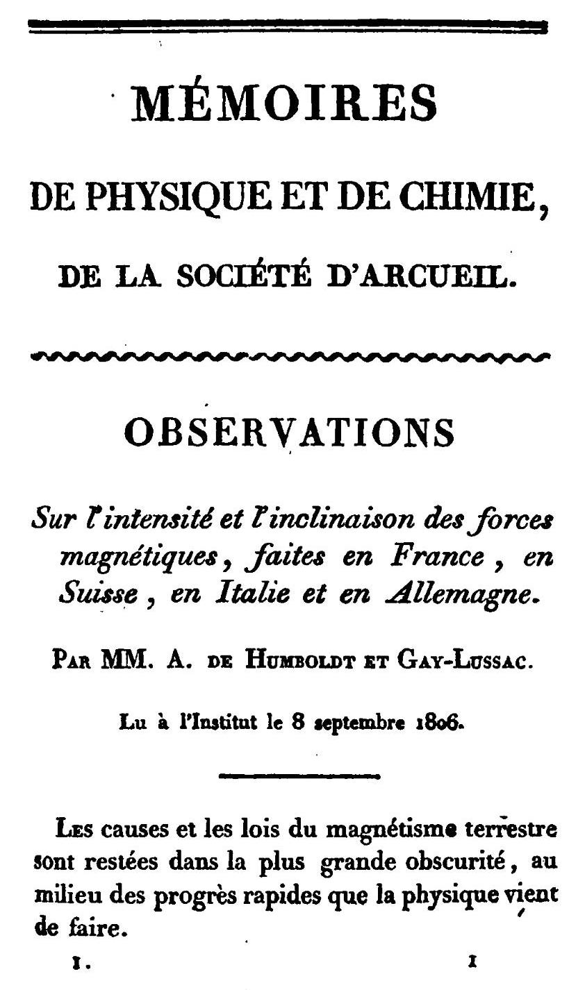 C’est à Arcueil, dans la maison de Berthollet, que Humboldt et Gay-Lussac firent connaissance, nouant une amitié et une collaboration scientifique qui allaient durer près d’un demi-siècle. Arago a raconté la rencontre entre les deux hommes [6] :
